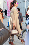 いちばん上に着用したアイテムの色が茶色の女性すべて。柄や素材などは問わない。