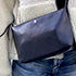 この色落ちデニムは、薄めだけど、薄すぎなく暗めで、他の服と合わせやすいカラーが気に入っています。ハイウエストなのも好きです。ショート丈のアウターとスニーカーに合わせることが多いです。ミニバッグは、大きなバッグが苦手なので小さいのにしています。重いし肩こるので、トートバッグも持ちません。キャッシュレスにはしませんが、小さいバッグのために、小さいお財布にしました。バッグの中身は、スマホ、モバイルバッテリー、ハンドクリーム、お財布の4つをいつも入れています。