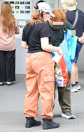 カーゴパンツ・裾絞りパンツの2人組に遭遇。革靴やクリーンな白...