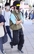 カーゴパンツデザインの黒いパンツが案外多かった渋谷地点。ポケ...
