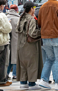 ショルダーバッグと思われるタイプを短く結んで手持ちしていた女...