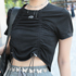 短い丈のTシャツ+ハイウエストの組み合わせが好きでよくこのスタイルをしています。その中で気に入って買いました。流行っているなとは思っています。いまのPAGEBOYはストリートトレンドが多いです。ストリートスタイルが好き。パンツはよくはくし、すごく気に入っています。何にでも合わせられるシルエットが好きです。Tシャツのシャーリングは調節が効きます。他に、白で横シャーリングのものを持っています。