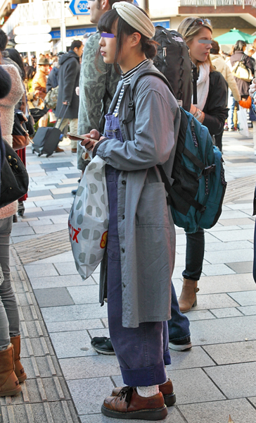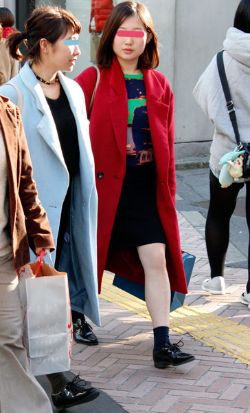 昨年冬に大流行した、トレンチコート+キャップ+白ソックスのシ...