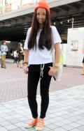 黒いボトムスを着用していて、合わせたトップスが白の女性すべて。ワンポイントのデザインがあしらわれているものは含むが、柄は含まない。プリント等は、全体の3分の2以下である場合は含む。素材は問わない。