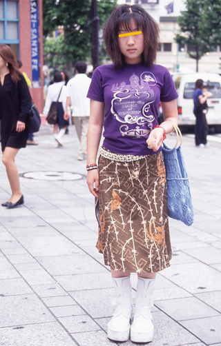 スカートの丈がヒザより5〜6センチほど上、または下のもの。素材や色は問わない。