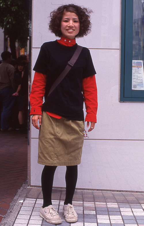 Tシャツの上にさらにTシャツやベスト、ノースリーブ・パーカー等を重ねている人。ただし、ソデが出ている着こなしをしている人。