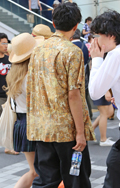 男性に古着と思われる柄シャツが増えている。こちらはアメリカ西...