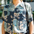 このシャツを着たのは、オープンカラーでタックインしたスタイルをしたかったから。アロハシャツはカジュアルすぎるから、モードな和柄を選びました。普段からモード系で全身黒が多いです。