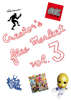 各界の人気クリエイターが一同に会し、愛用品やコレクションが並ぶクリエイターズ・フリーマーケット。あらゆるものにカスタムペイントした作品を発表する倉科氏、ハンドワークでリアルな立体物を制作するGELCHOP、「VOW」シリーズで知られる渡辺氏、「スーパー☆ラット」などで話題のアート集団Chim↑Pom、映像だけでなくTV番組の構成作家としても活躍する大月氏、PV映像を中心に活躍する清水氏、「みんなのトニオちゃん」で人気のCG漫画家菅原氏によるフリーマーケットを開催致します。会場で出品者と直接交渉することも可能です。出品者の来場時間や最新情報は決定次第、ニュースまたはブログやこのページ上でお知らせ致します。