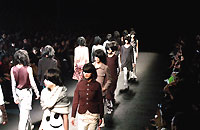 そんななか、JFWのちょうど1週間前にあたる3月11日に、人気女性向けファッションサイト『ガールズウォーカー』の、やはり“第2回目”となるファッションイベント「東京ガールズコレクション」が国立代々木競技場第一体育館で開催され、なんと昨年を5,500人上回る1万8,100人を1日で動員したというから驚く。いわゆる109系やお姉系ブランドがメインのファッションショーは、人気モデルの蝦原友里ちゃんや押切もえちゃん、土屋アンナちゃんなども登場。彼女たちが着用した服が実際に買えるという仕組みになっており、観客たちにとっては、ある意味「リアルクローズ」である。さらに今回は、「ART&Fashion=TOKYO」をテーマに、村上隆氏が主宰する「GEISAI#9」とコラボレーションをするなど、マーケット・オリエンテッドな展開に拍車がかかっており、ある意味今っぽい。