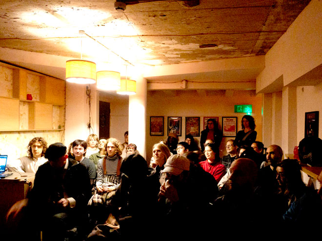 今回が2回目の参加という3D(VFX)デザイナーのカップルは、「最初に来たとき、アーティストが迷いや疑問を抱えながら作品に向き合っている姿に刺激を受けて、自分も個人的なプロジェクトを続けていく自信がもらえた。それに全然嗜好が違うクリエイティブな人たちに会うのが好きなのでまた来たいと思った。今回は前回とは違ってもっと抽象的でシュールな作品が多く、TINASは上映作品を選ばないので毎回どんな作品が見られるのか全く予想できない意外性もいい」と上映会としてのユニークな魅力にも触れた。